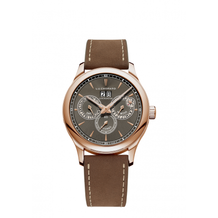 Symbole de la philosophie horlogère de Chopard, la L.U.C All-in-One conjugue à merveille complexité extrême et élégance hors du commun. Dotée d'une réserve de marche de 7 jours, cette montre grande complication à tourbillon réunit 14 indications, parmi lesquelles figurent le calendrier perpétuel, les heures de lever et de coucher du soleil ou encore l'affichage orbital des phases de lune. Guilloché à la main, le cadran bleu-gris de cette pièce en platine est assorti à sa teinte argentée, créant ainsi le garde-temps idéal des gentlemen des temps modernes. Arborant le Poinçon de Genève – véritable marque de qualité –, la somptueuse L.UC. All-in-One en platine est limitée à 10 exemplaires.