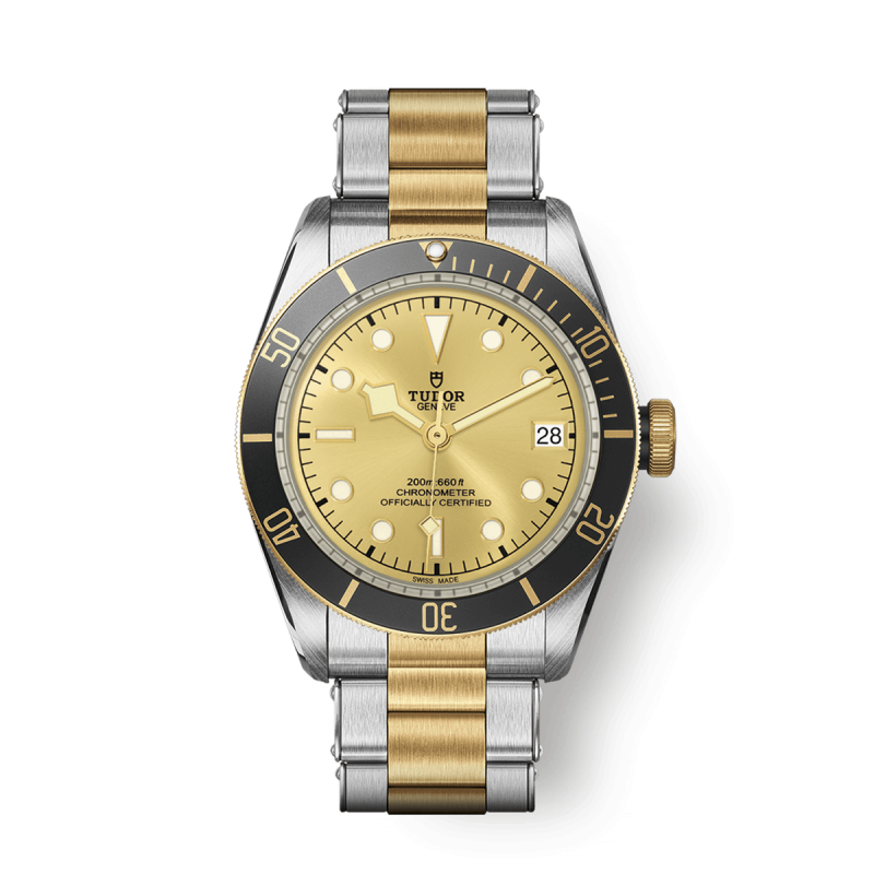 En 2017, TUDOR ajoute une nouvelle version en acier et or à la fameuse famille Black Bay, avec l’introduction de la fonction date. Équipée d’un Calibre Manufacture MT5612, la Black Bay S&G est disponible avec un écran noir, ou désormais avec un écran couleur champagne.